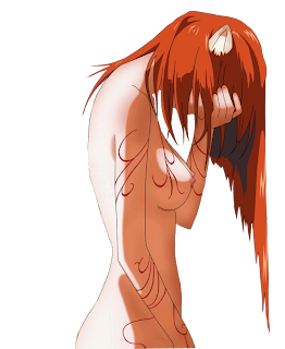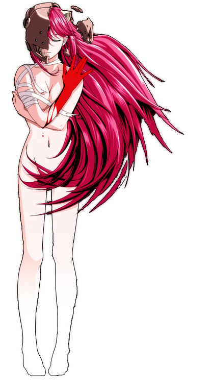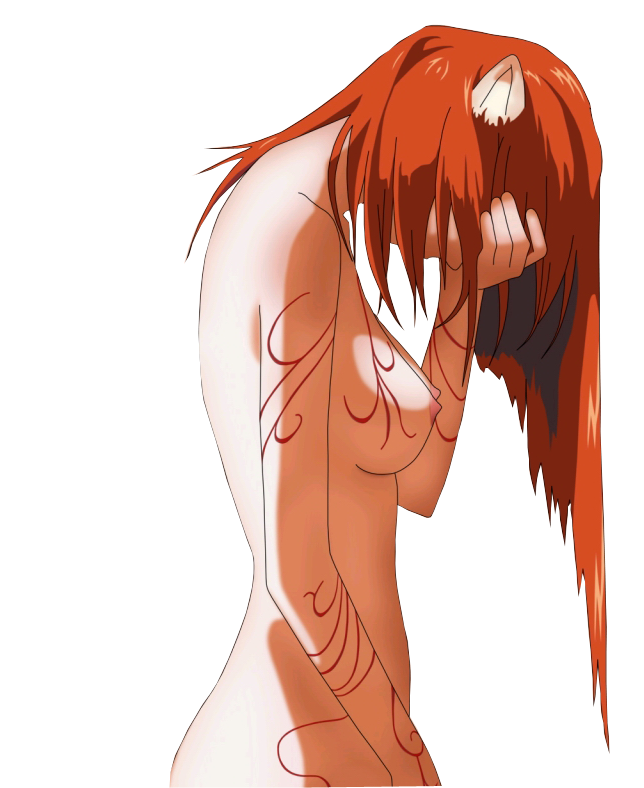 Um segmento do primeiro episódio do anime, que é notório por apresentar nudez e violência gráfica forte durante todo o período principal de sua execução. Aqui, Lucy está usando o corpo decapitado de um secretário como um escudo.